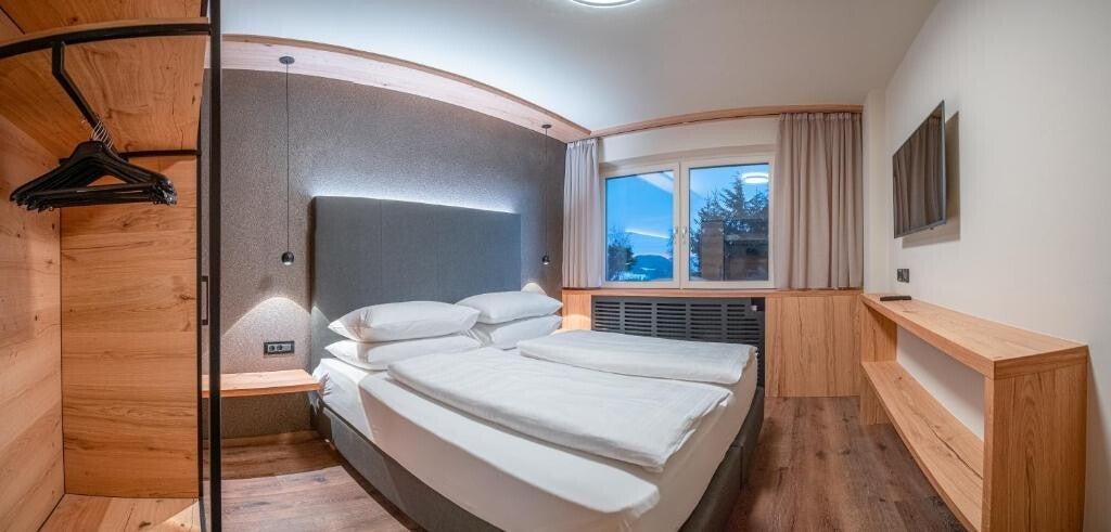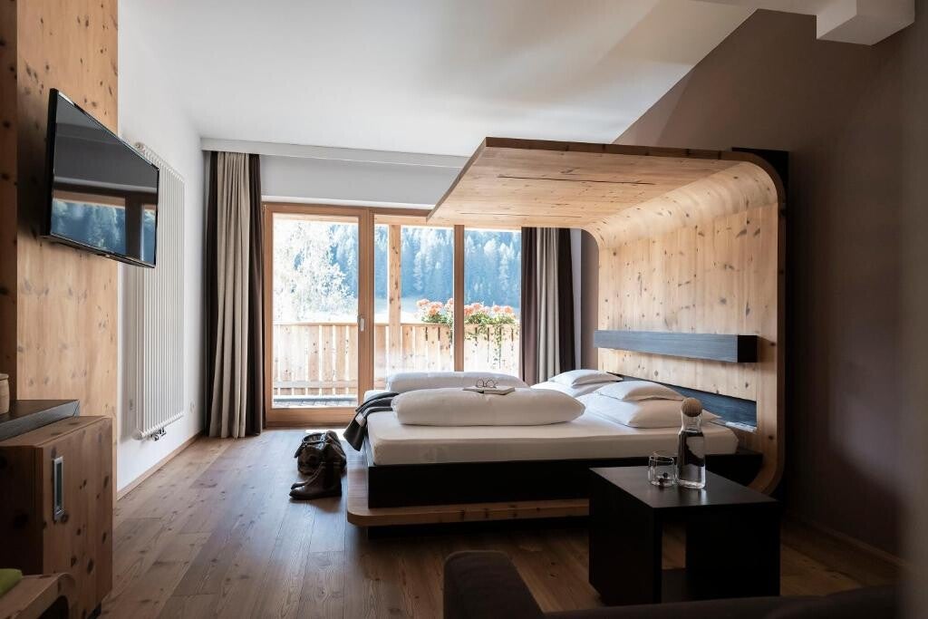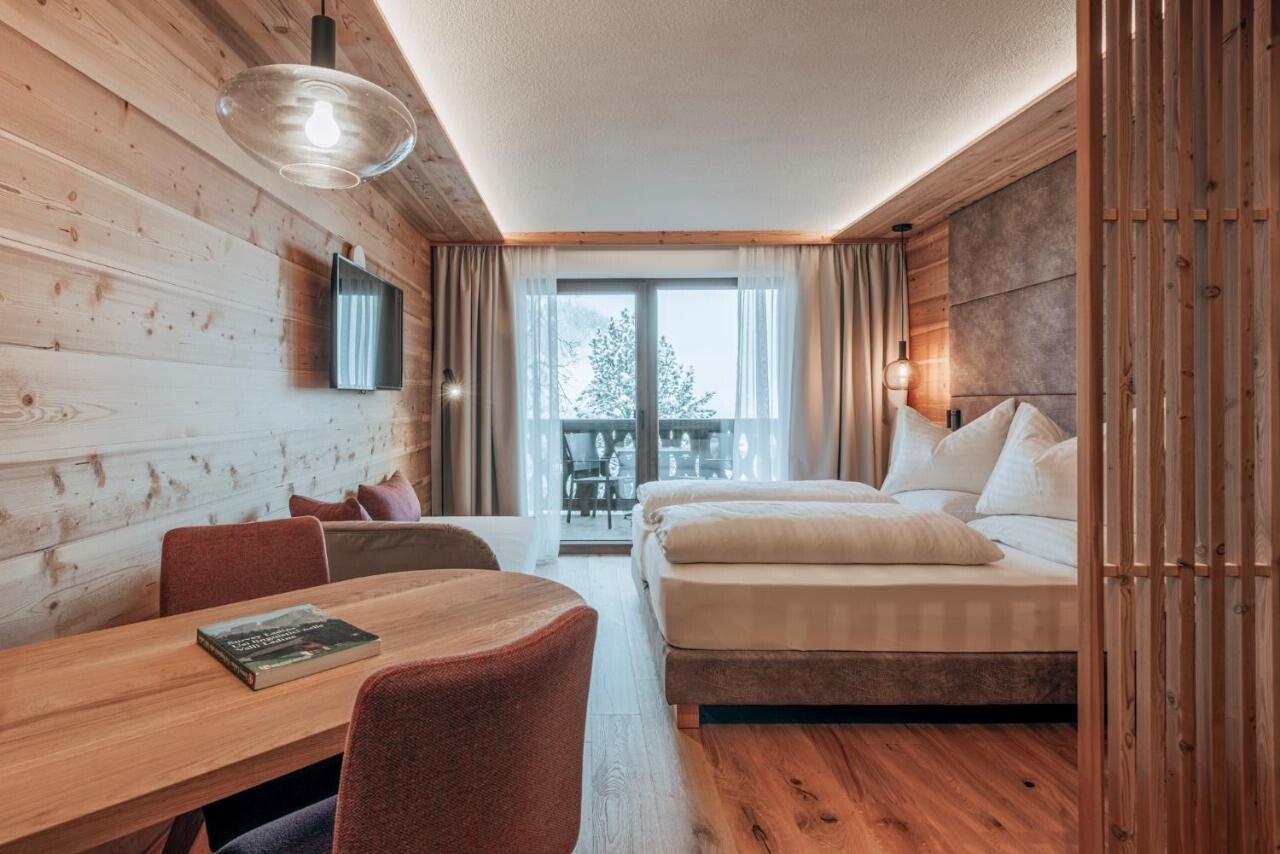 Il Sonus Alpis è un hotel a 4 stelle per soli adulti situato in una posizione privilegiata con una vista spettacolare sulle Dolomiti. Il suo nome, che significa "suono delle Alpi", si riflette nel concetto unico che unisce l'architettura alpina e un design moderno, incentrato sul benessere acustico e un'esperienza di relax totale. Gli ospiti possono godere di una piscina a sfioro, di una spa di lusso e di un'atmosfera di pace assoluta, pensata per una fuga dalla routine quotidiana.