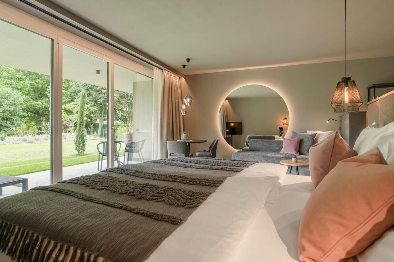 DAS BADL - Smart Retreat AO, a Caldaro, offre un soggiorno rilassante con vista montagna, piscina coperta, vasca idromassaggio e un bar accogliente. Le camere moderne sono dotate di TV satellitare, cassaforte e bagno privato. Gli ospiti possono gustare una colazione a buffet e approfittare di attività come escursionismo e ciclismo nei dintorni. A soli 16 km dall'Aeroporto di Bolzano, la struttura è facilmente raggiungibile e ideale per una pausa all'insegna del benessere.