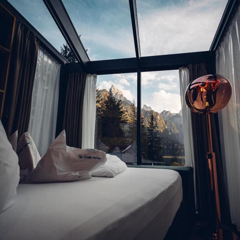 Gli Skyview Chalet di Dobbiaco sono esclusivi chalet a cupola con tetto in vetro, immersi nella natura per un'esperienza a stretto contatto con il cielo stellato. Combinano il lusso di una sauna privata e di una vasca idromassaggio con una vista panoramica sul lago e sulle Dolomiti.