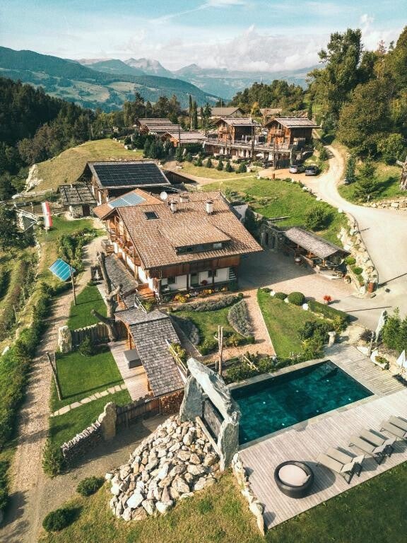 Un piccolo villaggio di chalet per soli adulti, alle porte della Val Gardena, a 1.000 metri di altitudine. Natura, silenzio e lusso discreto convivono in armonia. Ogni chalet offre vasca idromassaggio, sauna privata e totale privacy. Terrazze con vista sulle Dolomiti, calice di vino in mano, pace e tranquillità senza eccessi. Il lusso qui è semplice: silenzio, panorama e libertà.